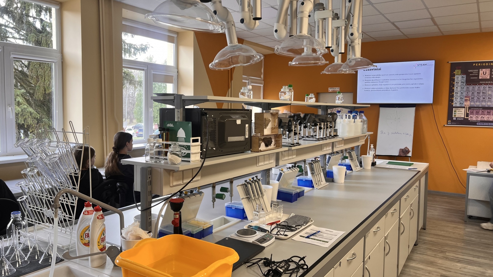 5–6 klasių mokiniai lankėsi Marijampolės STEAM atviros prieigos centre. Pamokos metu mokiniai tyrinėjo samanas, mikroskopu stebėjo jose gyvenančius organizmus, aiškinosi jų sandarą ir prisitaikymą prie aplinkos.