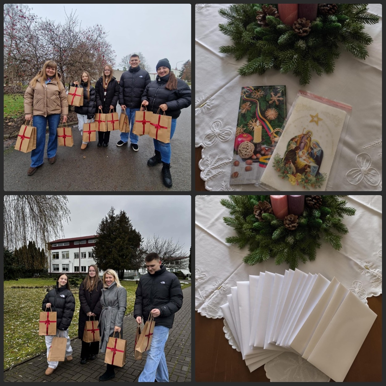 Progimnazijos mokiniai kepė kalėdinius sausainius, bendruomenė ir kultūros skyrius gamino žvakes, sveikinimo atvirutes, o į dovanų rinkinį įdėjo šventinę plotkelę - ramybės ir bendrystės simbolį.