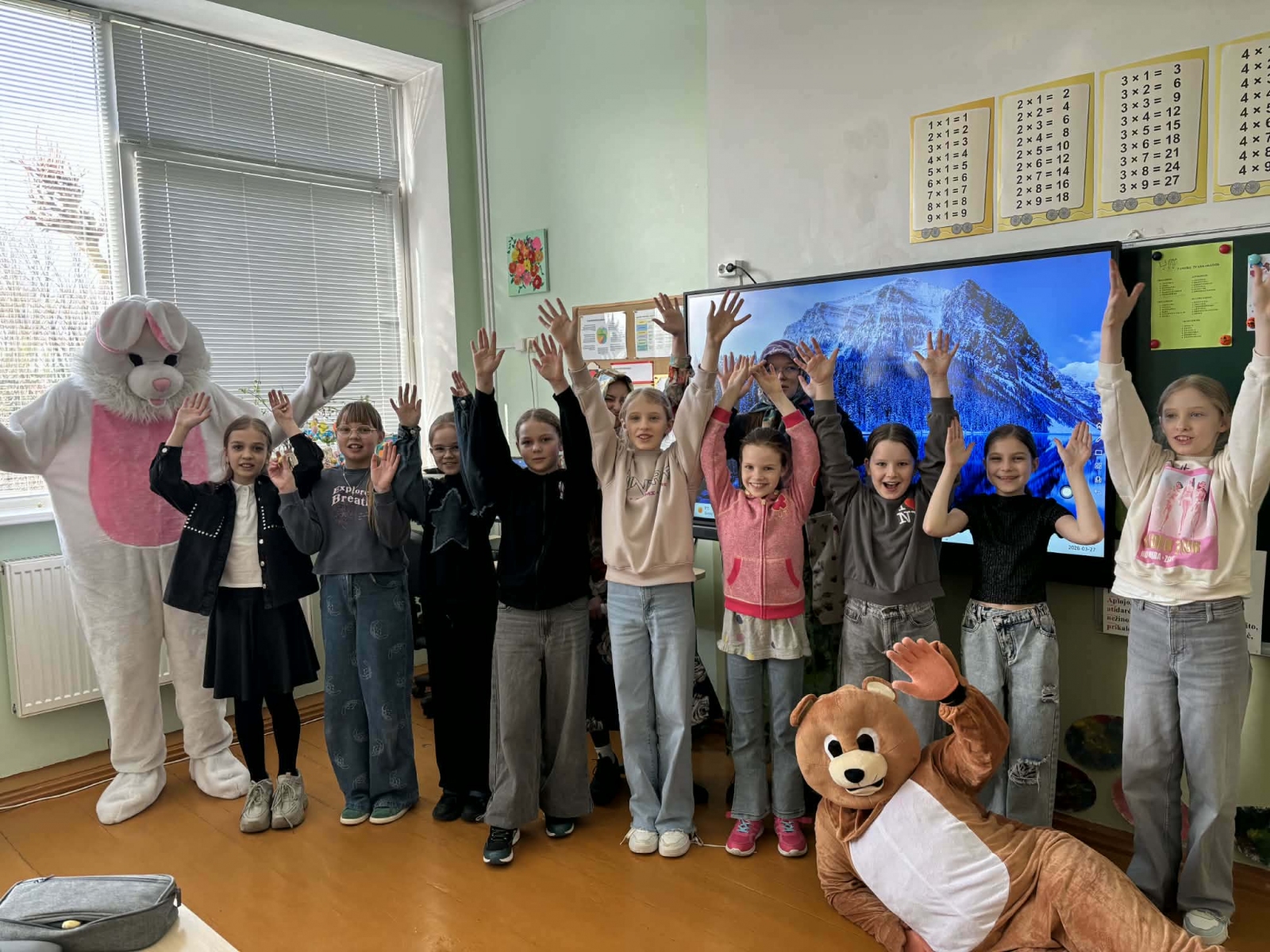 Mokinių tarybos iniciatyva surengta smagi veikla pradinėms klasėms pradžiugino visus – Zuikis buvo paruošęs linksmą žaidimą ir pakvietė išbandyti „Zuikio testą“. Juoko ir gerų emocijų tikrai netrūko!