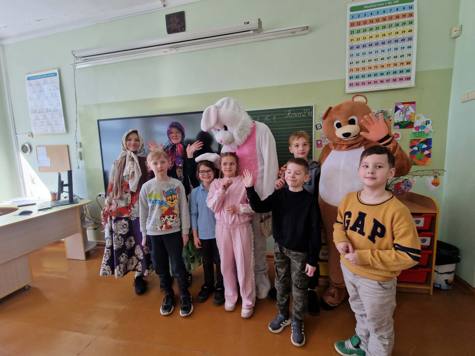 Progimnazijos mažuosius netikėtai aplankė Zuikis Išdykėlis su savo draugu Meškiu!